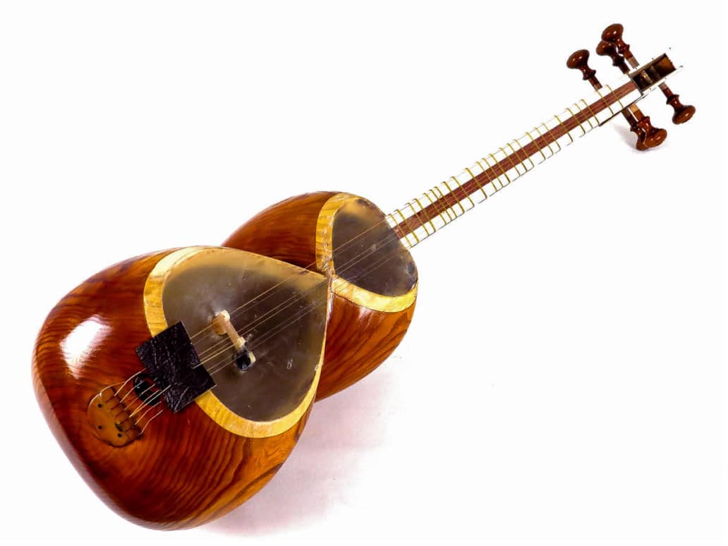 The body of the tar has a double bowl carved from a block of mulberry wood, with a thin skin membrane attached as the soundboard. When it is played with the traditional brass plectrum called mezrab, it produces a full, round, yet clearly articulated tone. It can be played as a solo instrument, in an ensemble, or to accompany a singer. As in many music cultures, the instrument’s sound and articulation mimic the vocal singing style, so the tar is played to sound like Persian singing, which employs a distinctive technique of melodic and rhythmic embellishment known as tahrir.
